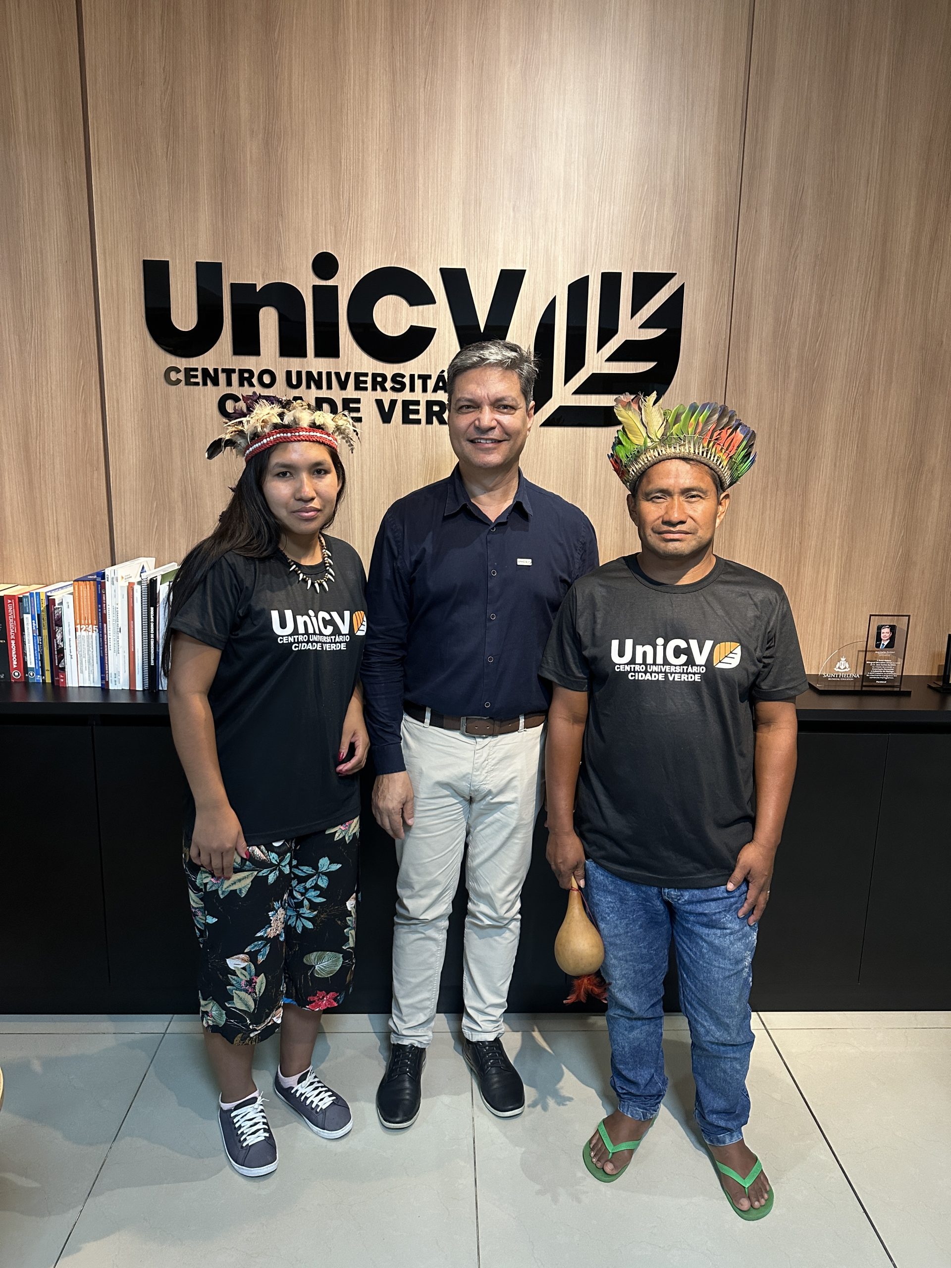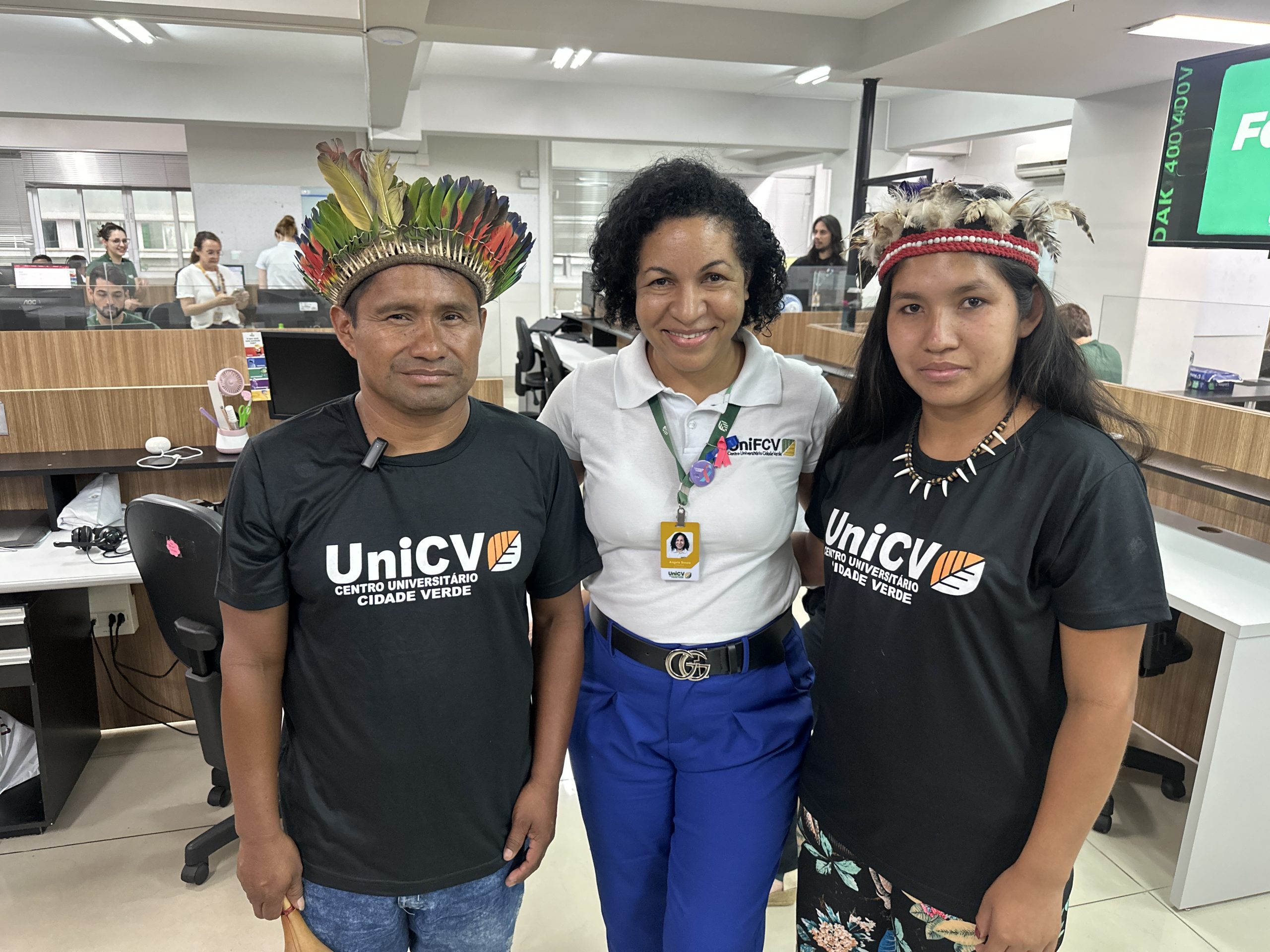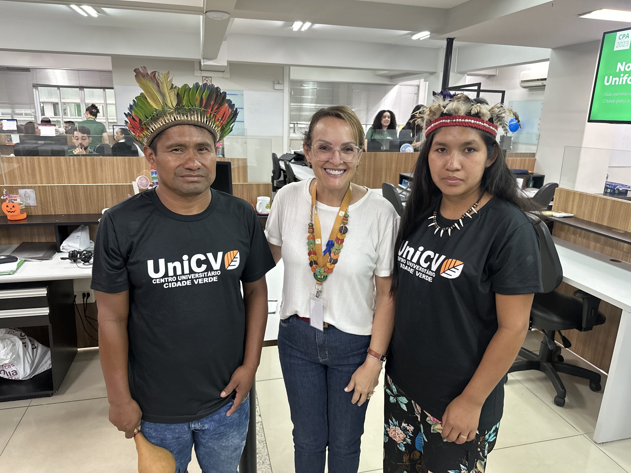 Paulo Martins e sua esposa Lili Celeste, indígenas da cidade de Guaíra, no Paraná, viram seu sonho se concretizar ao visitarem o campus do Centro Universitário Cidade Verde (UniCV), em Maringá, nesta terça-feira, 14 de novembro. Ambos estudam Pedagogia na modalidade a distância, e a oportunidade de conhecer o ambiente acadêmico era algo que esperavam há anos.