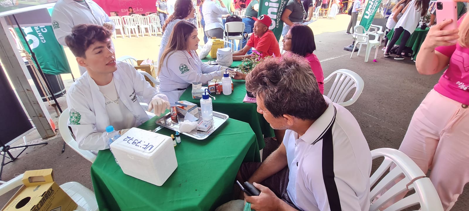 Na área de Direito, foram prestados acolhimento, atendimento e orientações jurídicas nas áreas de Família, Consumidor e Previdenciário. Além disso, os estudantes e professores de Biomedicina realizaram exames rápidos de Tipagem Sanguínea e Glicemia Capilar, fornecendo orientações sobre os resultados.